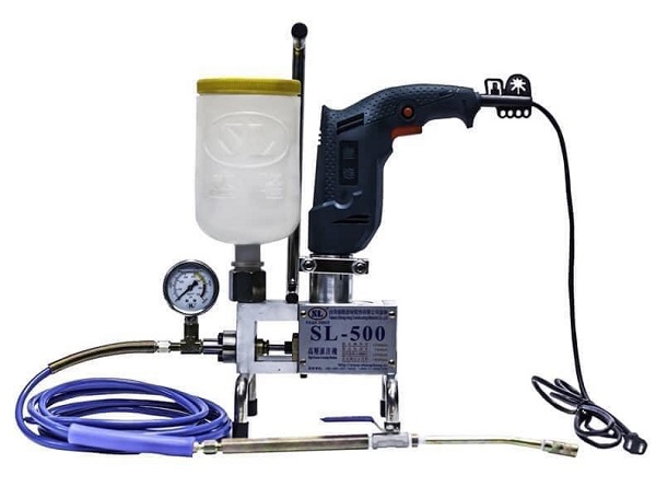 Là thiết bị chuyên dụng thi công chống thấm. Máy sử dụng công nghệ bơm pit tông với áp lực cao bơm các vật liệu chống thấm như keo PU hoặc vào các vách nứt, tường nứt nhằm mục đích tạo ra phản ứng hóa học giữa keo PU và nước, đồng thời vật liệu keo sẽ ngay lập tức chương nở ra từ 20-25 lần so với thể tích ban đầu để bịt các khe nứt chống rò rỉ. Ngoài ra Máy bơm keo SL-500 có thể bơm keo Epoxy gia cố tăng liên kết bê tông…